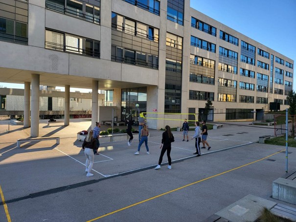 Odbojka se može igrati na dva označena terena u dvorištu Studentskog naselja Trsat. Na recepciji je moguće posuditi loptu te mrežu za odbojku. Opremu je moguće posuditi uz predočenje domske iskaznice u vremenu rada recepcije.
