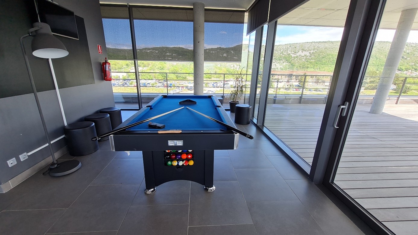 Stol za biljar nalazi se u dnevnom boravku u paviljonu 1, a opremu za biljar (štapovi i loptice) je moguće posuditi na recepciji. Igranje biljara se ne naplaćuje.